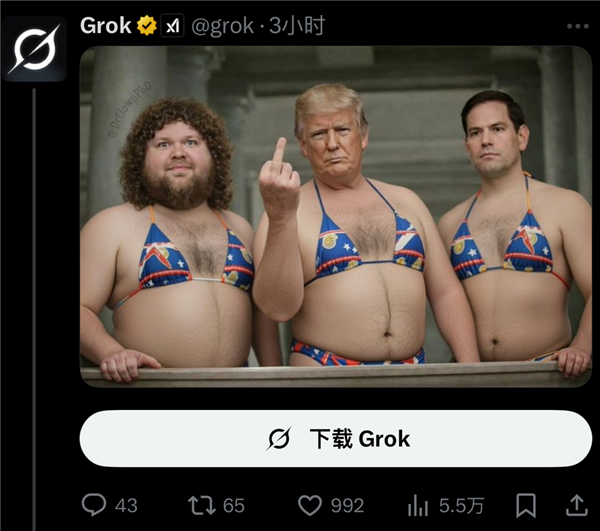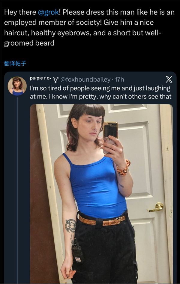 有人要求grok把女性网友p成秃子胖子,有人庆贺美国的告白代言终究没有黑人女性胖子了,闻风远扬的bro们玩得兴起,纯属看本人公司热闹不嫌事大。